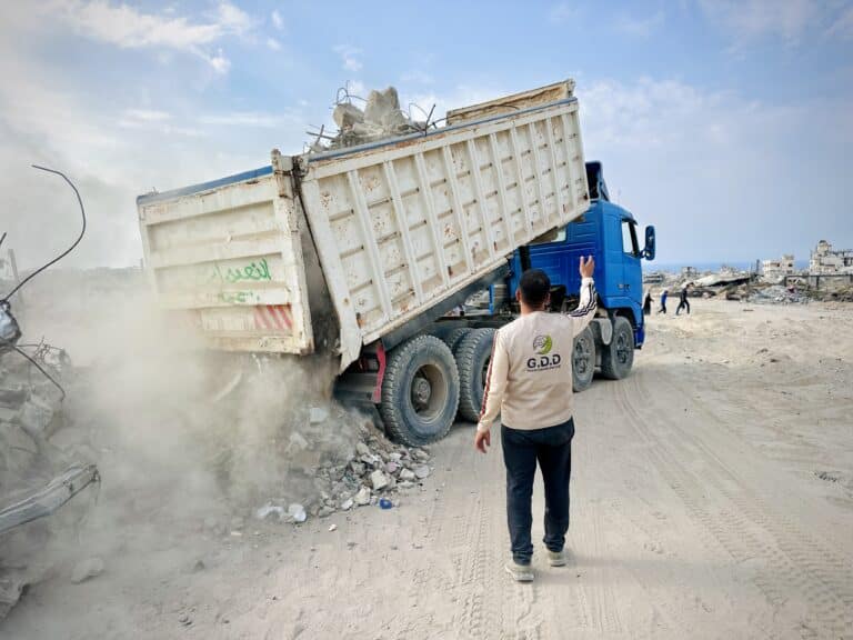 غزي دستك تبدأ في مشروع ازالة الركام في شمال قطاع غزة