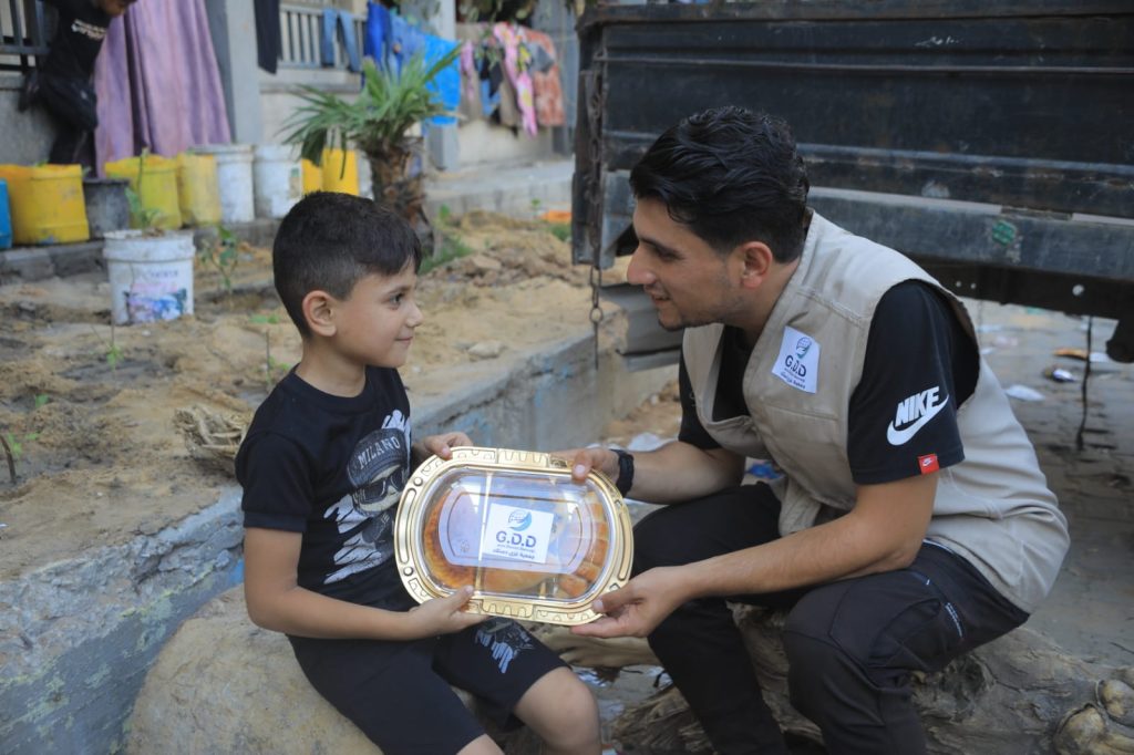 by the grace of Allah Almighty and through your generous donations, our team in Gaza was able to implement the pastry project and distribute them to the displaced in shelter centers.