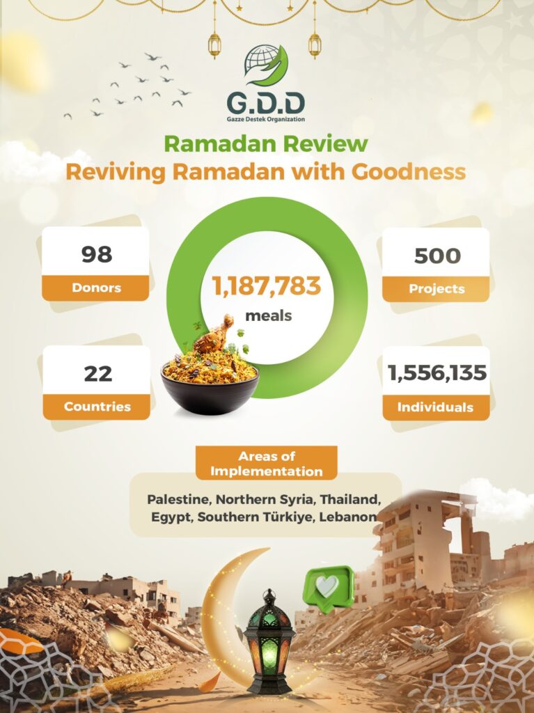 A total of 1,185,007 meals were delivered to fasting individuals in camps, shelters, and affected families.