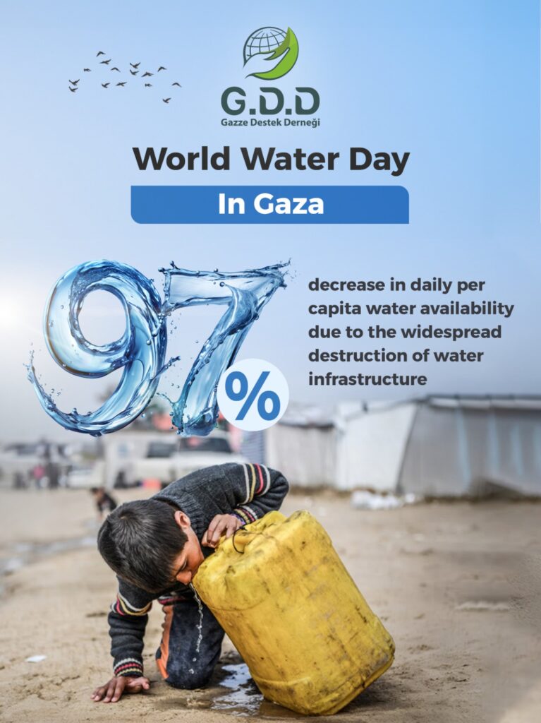 In Gaza (97% decrease in daily per capita water availability due to the widespread destruction of water infrastructure)