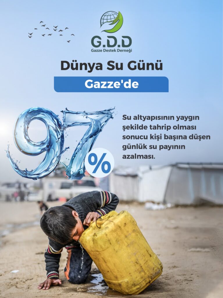 Gazze’de %97 su altyapısının büyük ölçüde tahrip olması sonucu kişi başına düşen günlük su payının azalması.